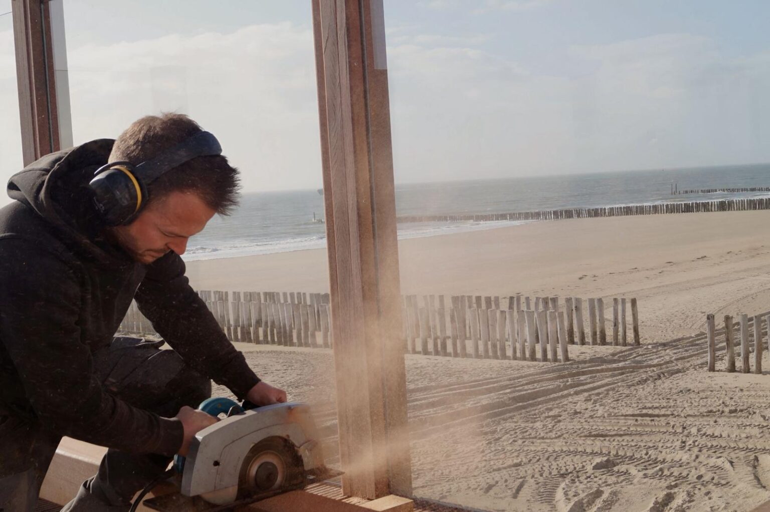 Terras renovatie bij bij strandpaviljoen BLUV, en uitbreiding doormiddel van overhellend terras.